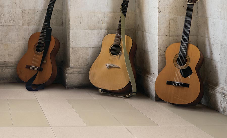 The monochromatic design of Harmonist includes a touch of modernity with fine-grained visuals in nine lightly speckled tile designs.